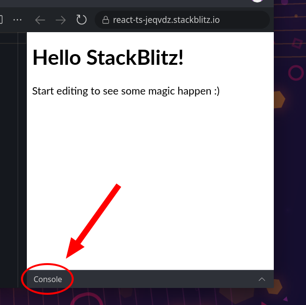 当您从StackBlitz创建一个新项目时,控制台就会出现在罗伯茨屏幕上。