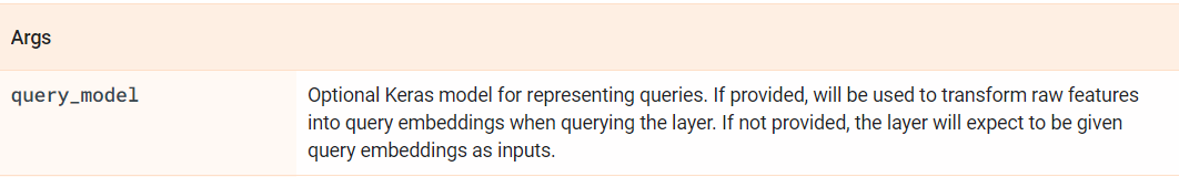 print(embeddings)不需要将模型传递给ScaNN,您可以直接将嵌入传递给它,也可以将文档这里中提到的嵌入传递给它