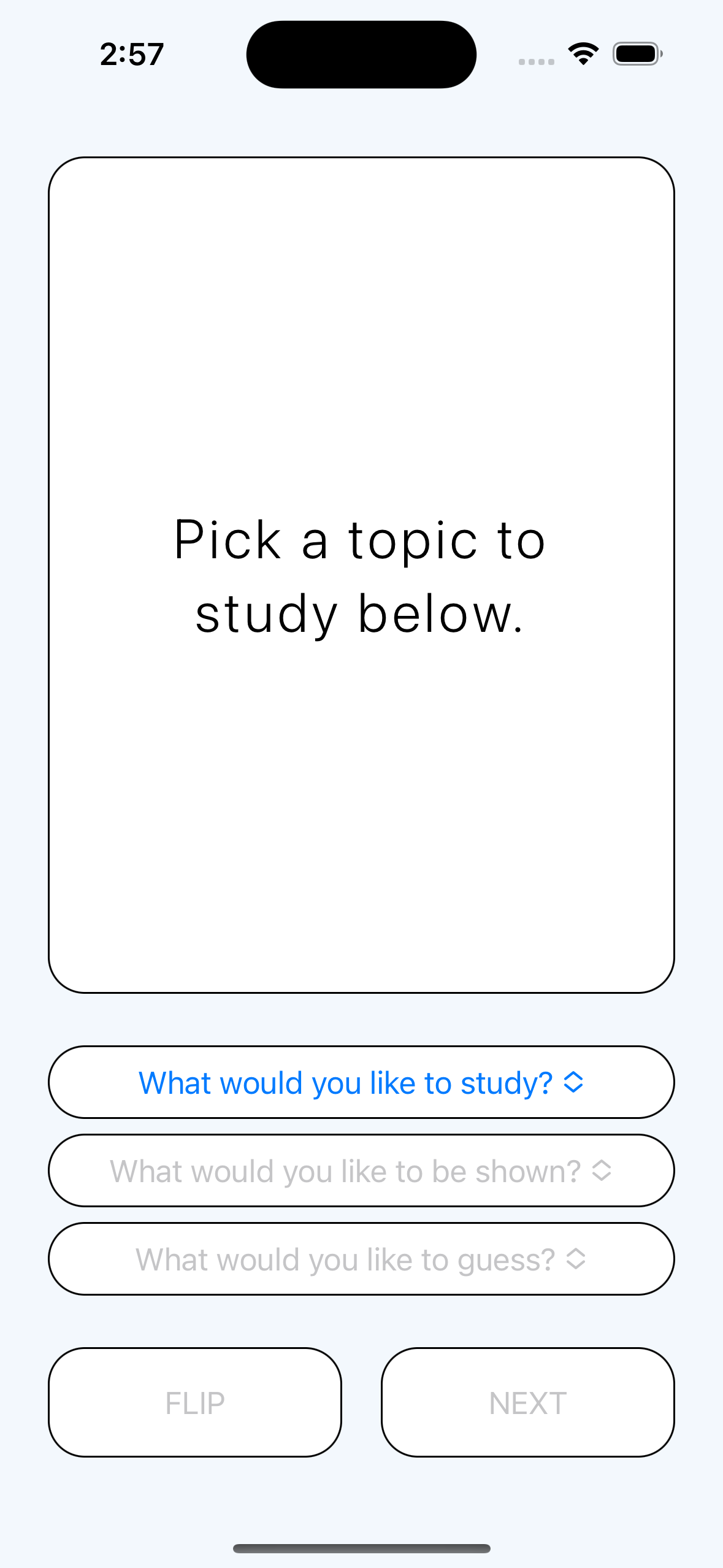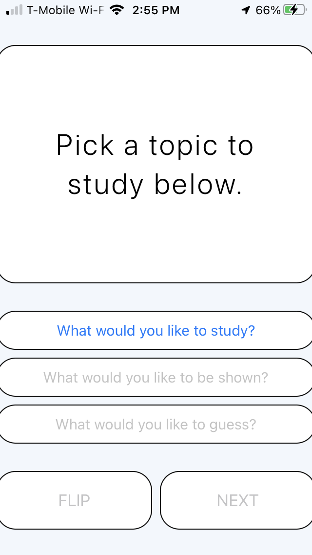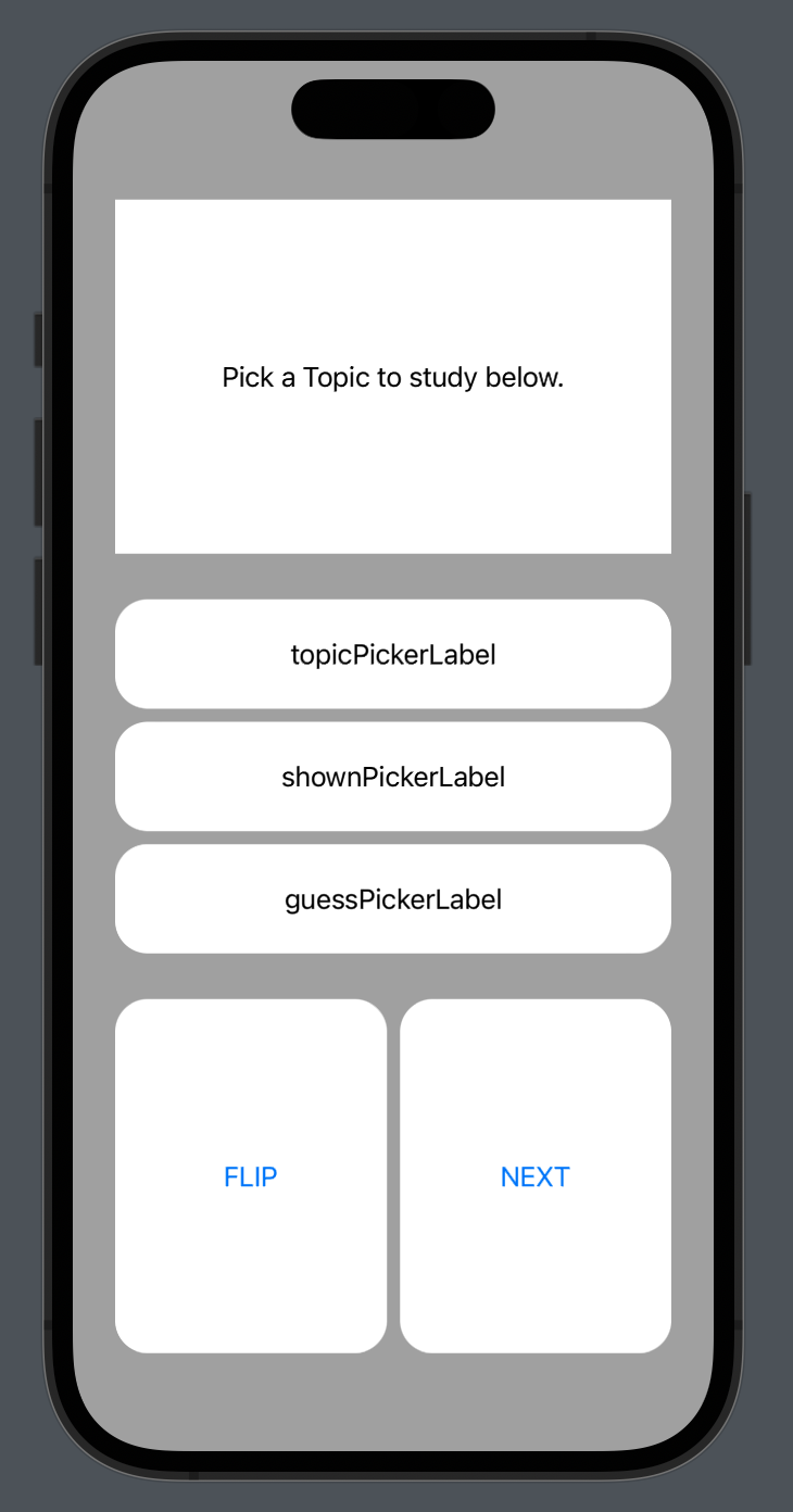 .overlay(Text("Pick a Topic to study below."))