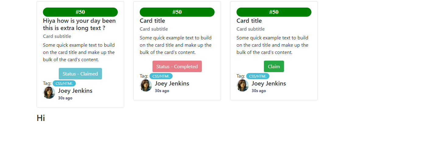 正如您所看到的,第一张卡的高度更多是因为文本长度较长。是否有办法确保卡的高度保持不变,即使不同大小的文本?(比如把一些文字转换成.如果太多的话?)