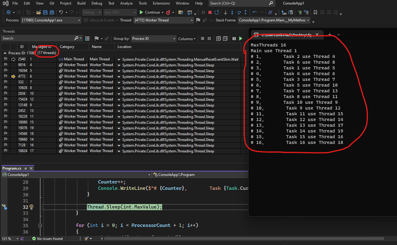 Console.WriteLine($"Main Thread: {Thread.CurrentThread.ManagedThreadId}");
