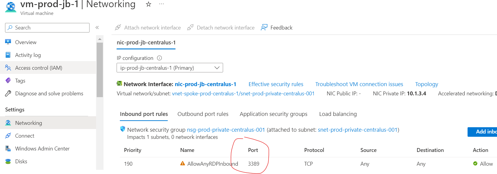 RDP在NSG级别被允许。