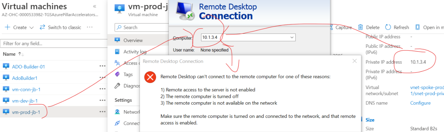 使用相同的P2S VPN,我不能到达生产订阅中的VM,而我可以直接从Jumb中将VM转到VM中。