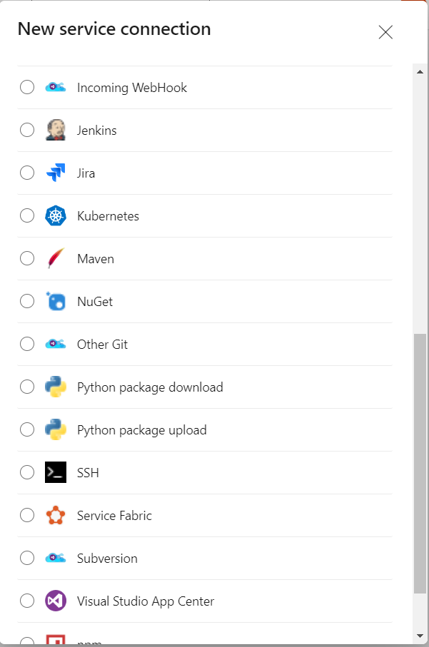 我在Azure DevOps中搜索服务端点,我没有为数字海洋找到服务连接(除了我为所有这些服务连接找到了gitlab、ssh、azure..eg之外)。