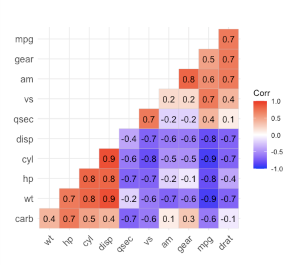 corr <- round(cor(mtcars), 1)