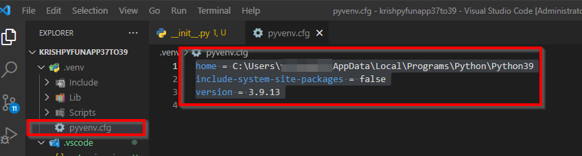 如果在项目中激活了虚拟环境,请确保更新项目虚拟环境文件夹中的主路径和版本号: