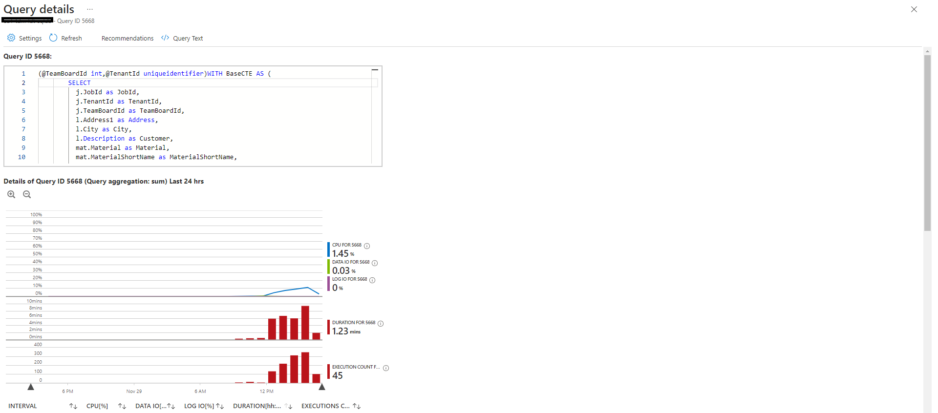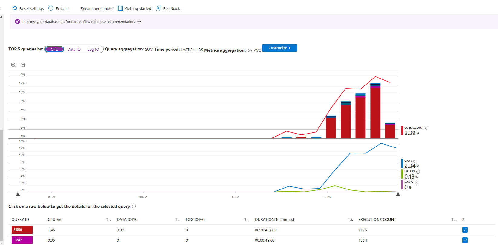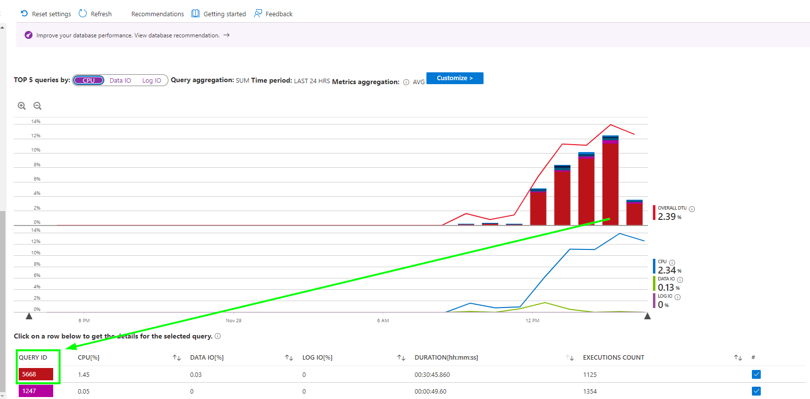 如何识别是哪个查询导致了这种情况?但是查询的DTU使用率很低。如下图1所示。