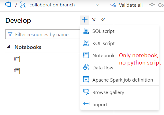 但是,在中没有选项保存*.py文件。通常,当我使用导入功能时,*.py被转换为笔记本(在笔记本电脑上它是util.py,在Synapse导入之后是一个笔记本):