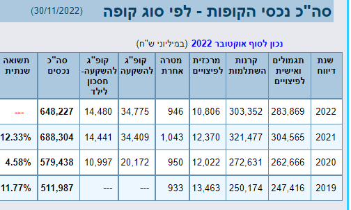 סה"כ נכסי הקופות - לפי סוג קופה