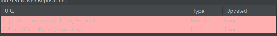 因此,在我的项目中使用了几个第三方依赖项。它们列在pom中,我可以在.m2文件夹中找到jars,但是每次我尝试安装maven时,它都告诉我它很难找到存储库。