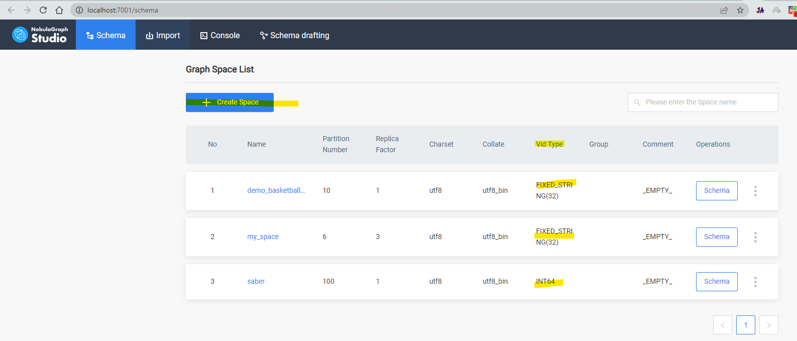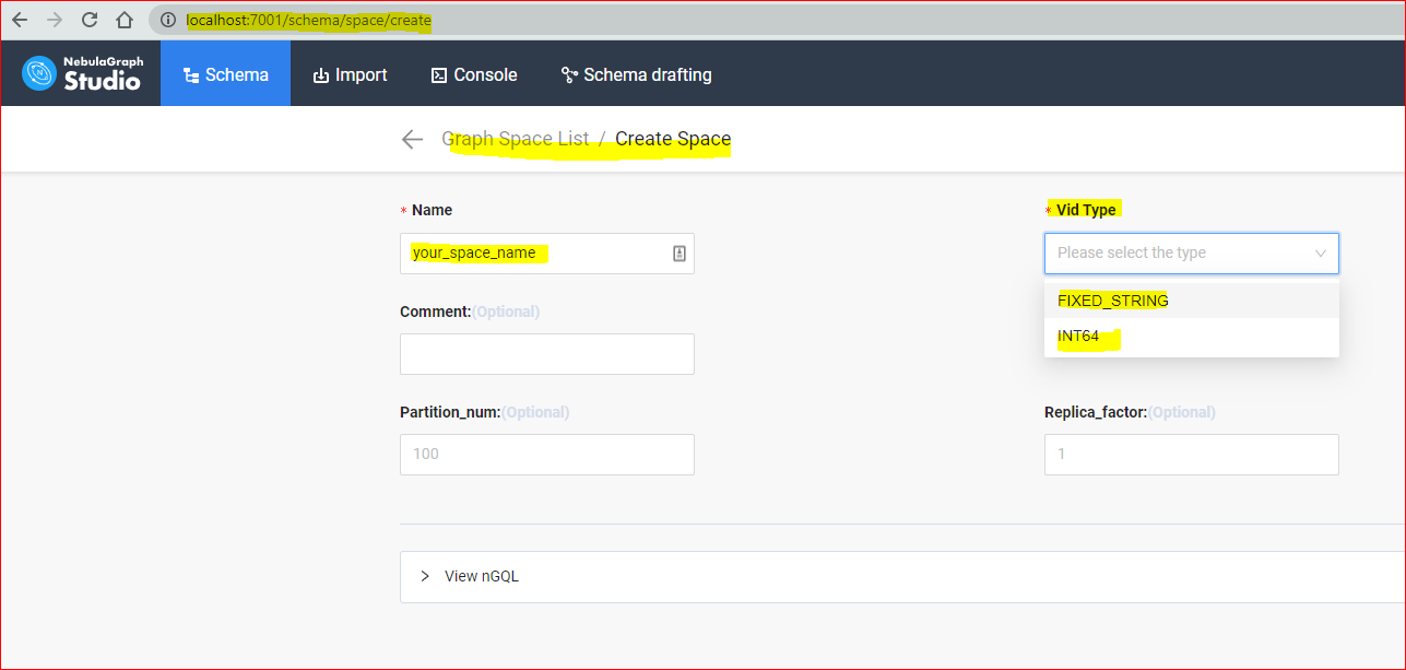 请注意,您所指的是NebulaGraph v1.x文档,在NebulaGraph V1中,vid只支持int64,但现在它支持(自2.x)字符串格式。在创建图形空间的过程中,您可以定义如下: