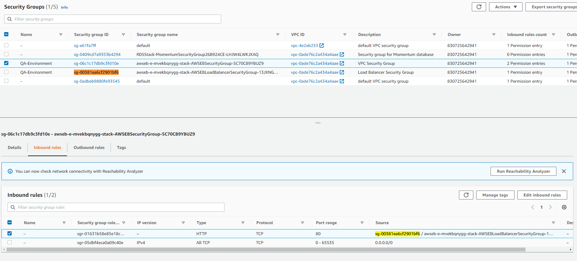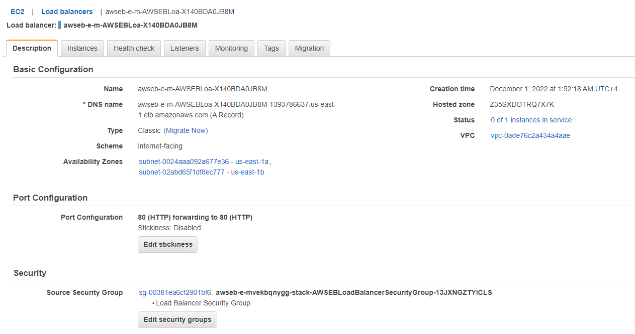 负载均衡器有适当的出口规则以到达EC2实例。