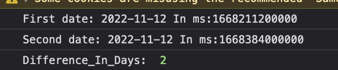 console.log("Difference_In_Days: ", Difference_In_Days);