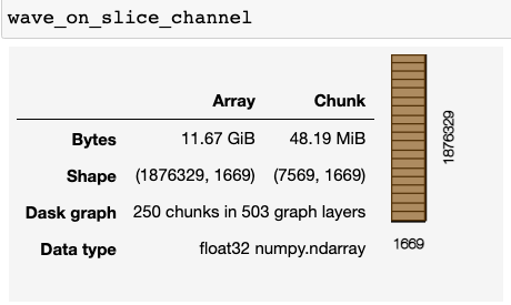 filtered_da = da.from_array(filtered_waves,chunks=wave_on_slice_channel.chunks) # this should be exactly the same in size and shape as the raw wavefield, except this is filtered