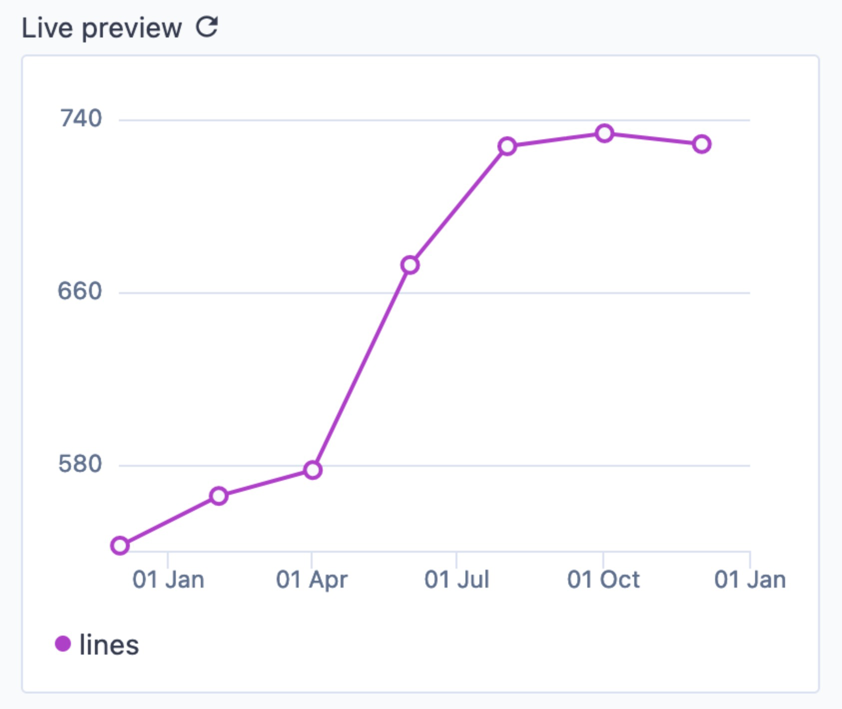 我想要建立一个很好的洞察力图,描述一个文件中的行数是如何随时间变化的。
