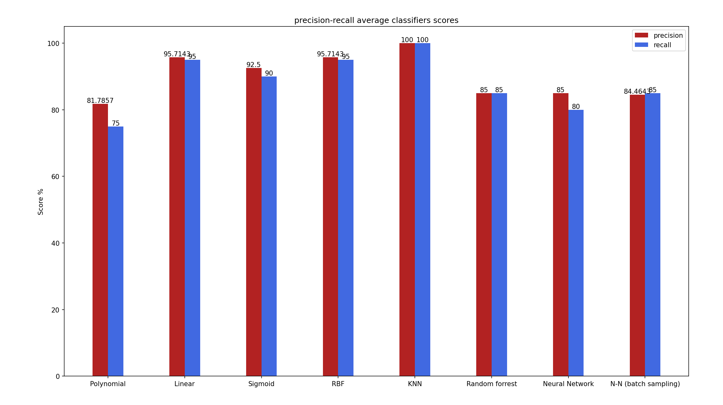 rects2 = ax.bar(x + width/2 , recall_data, width, label='recall',color = 'royalblue')