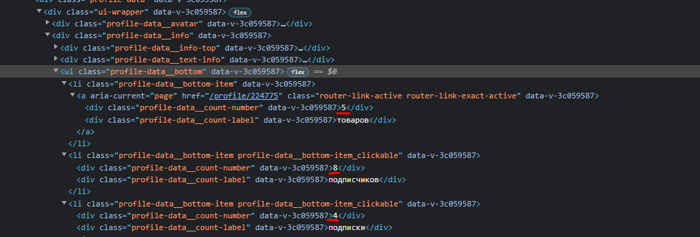 请注意,类是一个HTML 属性,因此在Node.Data中查找class="profile-data__count-number"永远不会导致匹配。相反,您应该在Node.Attr中查找。