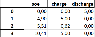 目前,我正试图优化使用pyomo的电池存储。我以为一切都正常,但由于某种原因,仓库总是在一开始就卸货。这应该是不可能的,因为一开始仓库是空的.