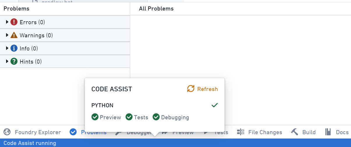 // ... some other awesome features you should enable应用此配置后,您将希望通过单击底部带状区域并单击Refresh重新启动代码辅助会话