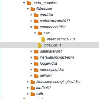 在所有情况下,我都使用与import {somthing} from "@firebase/messaging"相同的导入