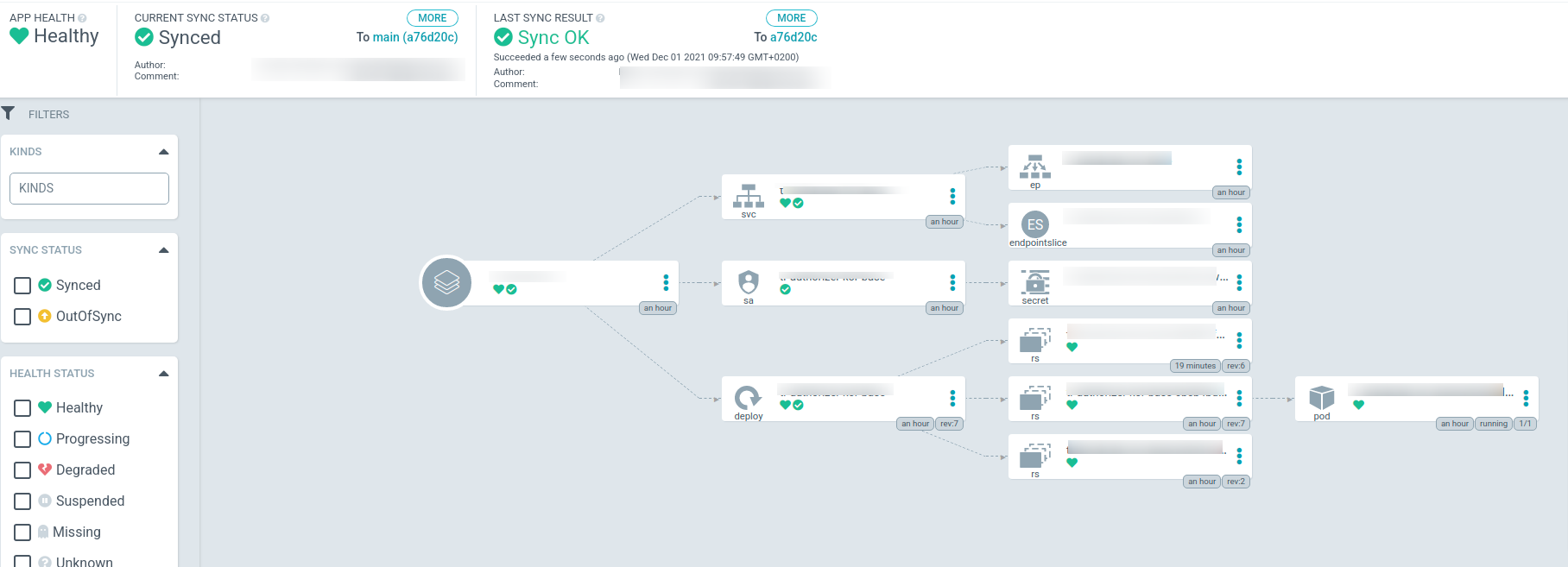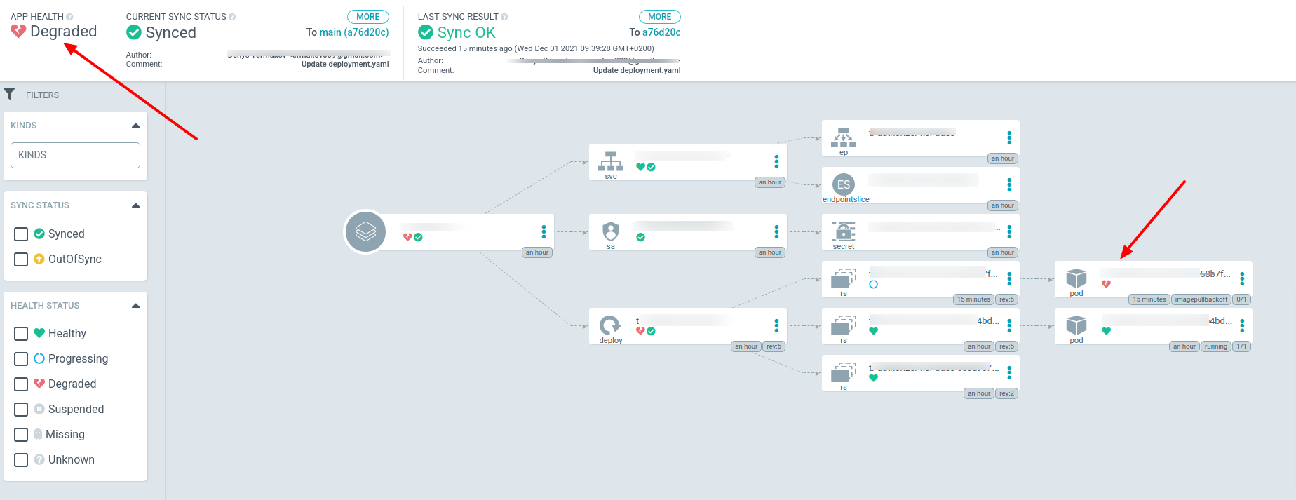 我相信问题不是来自ArgoCD,因为正如您提到的,同步状态是可以的。