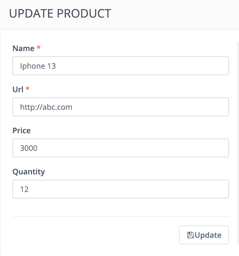 })我把name盒从“iPhone13”改为“iPhone12”。当我按下update时,我想得到我刚刚修改过的唯一值。