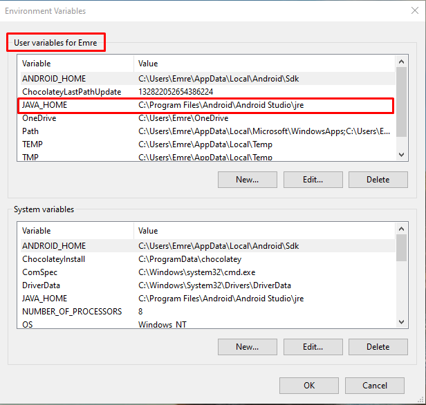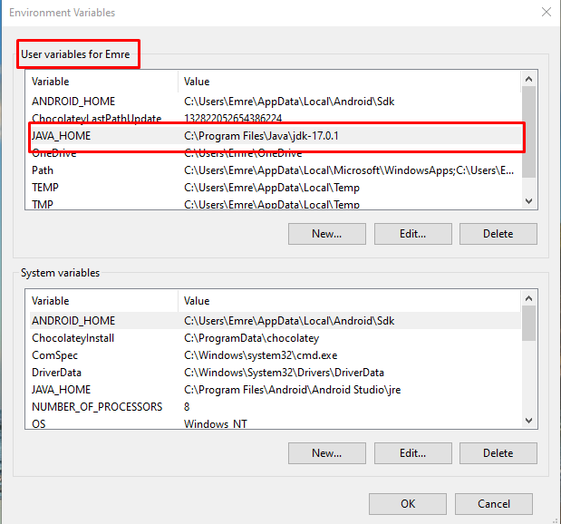platform-tools环境变量。H 211G 212我完成了这些步骤,但是当我试图在模拟器中打开react本机项目时,我得到了错误无效的JAVA_HOME。错误的全名是C:\Program Files\Java\jdk-17.0.1\bin\java.exe无效JAVA_HOME错误。