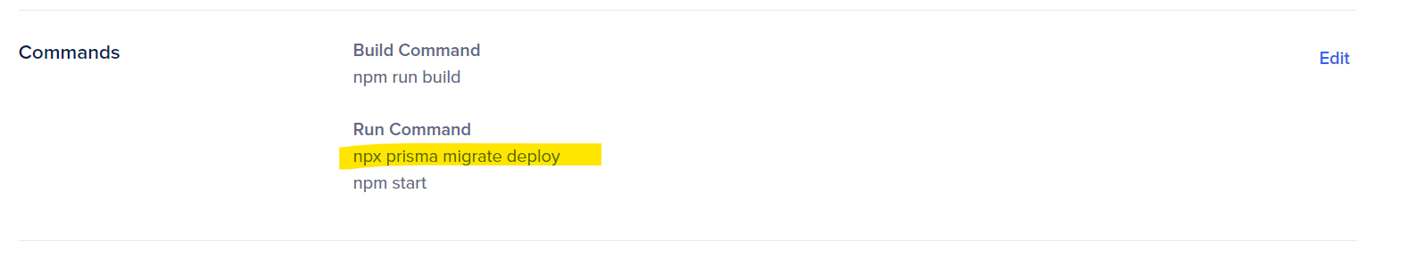 我通过将迁移命令移动到“run”部分来解决这个问题,请参阅图像