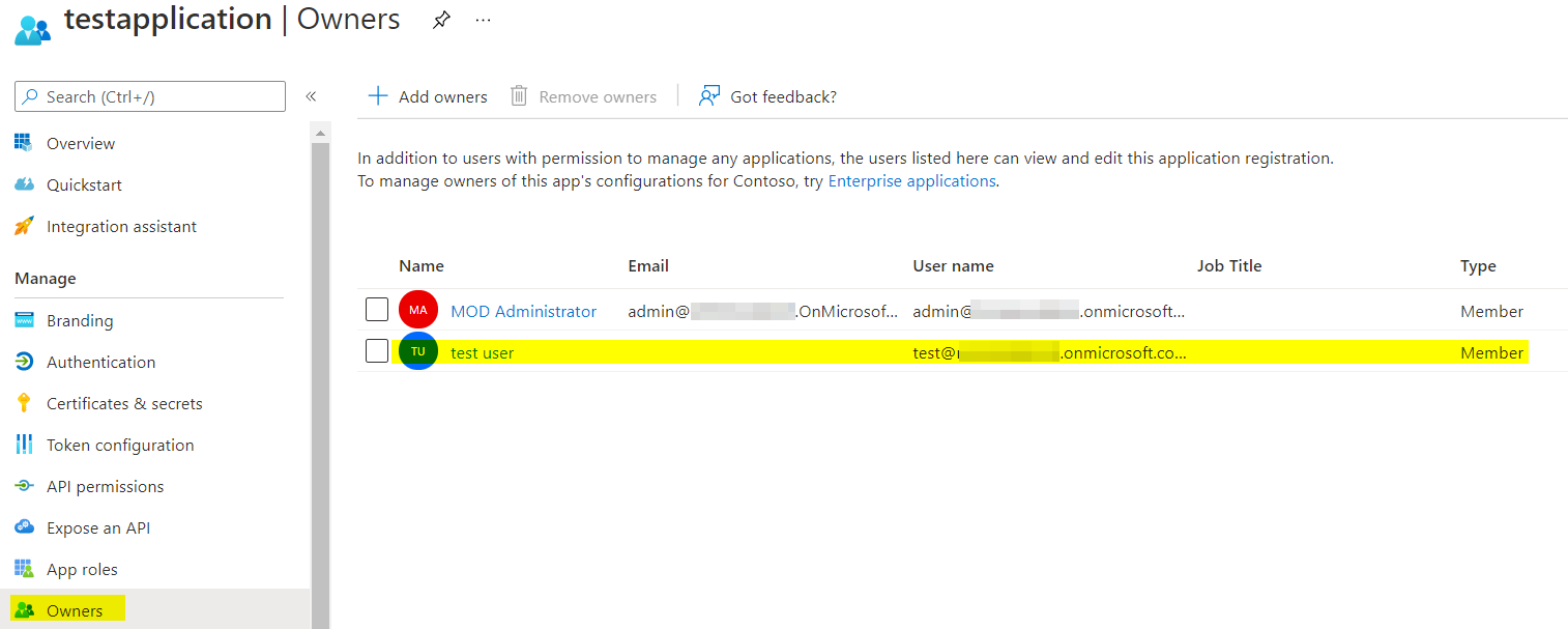 如果您正在使用下面的API,那么用户将被添加到App registration blade中的所有者部分。