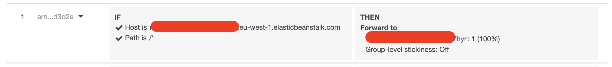 当使用带有ElasticBeanstalk配置的共享ALB时,我试图修改默认主机头CNAME附加到规则。通过使用Terraform,我的配置如下所示: