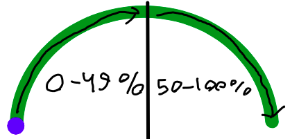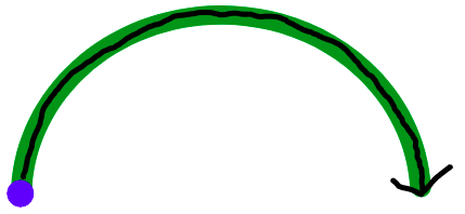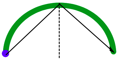 我有一个半圆(green)和一个对象(blue).我想把这个对象从开始(left)移动到结束(right)。对象应该遵循半圆的路径(black) .