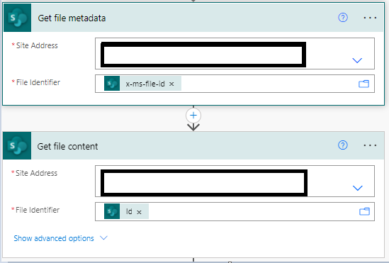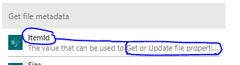 请注意,您从“获取文件属性”中的“获取文件元数据”插入ItemId字段作为文件标识符: