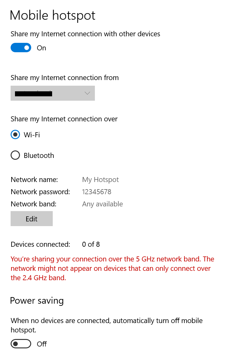 我尝试创建一个托管网络,但是NETSH显示驱动程序报告说驱动程序不支持托管网络。我可以创建热点使用Windows设置移动热点手动。在网上搜索,我只能找到运行在WinRT上的代码。