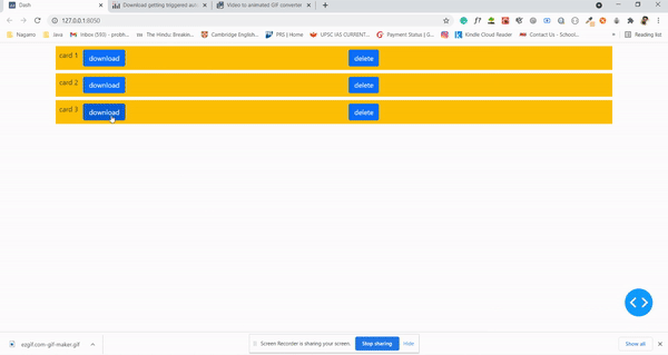 从这里你可以看到,如果我按下下载按钮,下载弹出就来了。下载后,如果我尝试删除其他卡,下载弹出再次出现。为什么会这样?