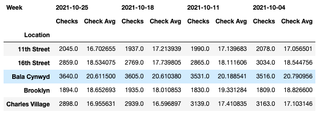 ['Checks', 'Check Avg'] * 3],