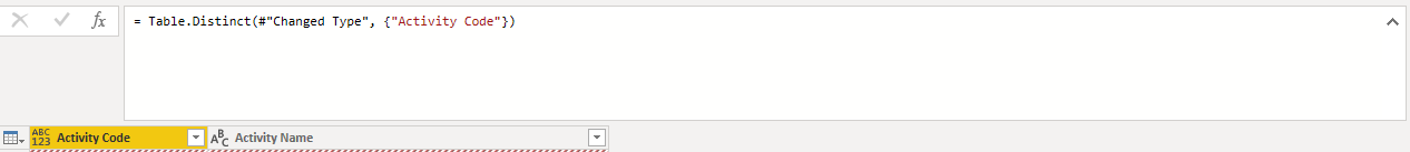 = Table.Distinct(Source,{{"Activity", Comparer.Ordinal}, {"Activity ID", Comparer.OrdinalIgnoreCase}} )或忽略Table.Distinct中所有列中的大小写