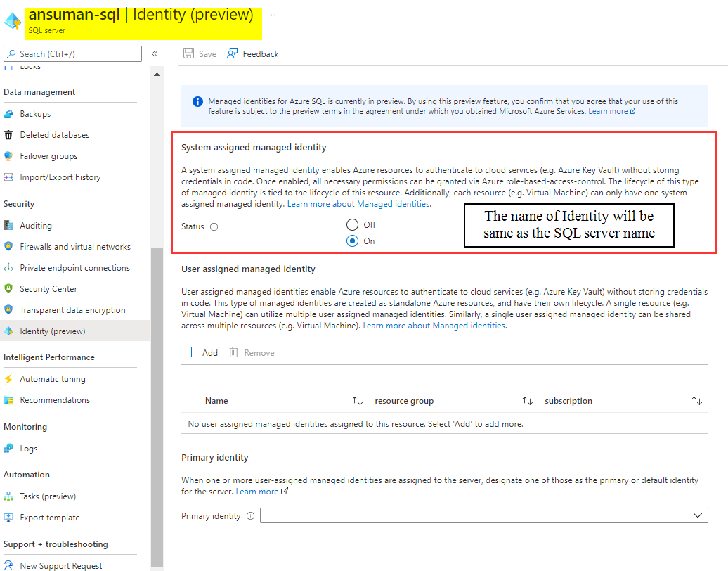 我在现有的Server上启用了系统托管标识,然后从terraform代码中提供了Storage数据贡献者。