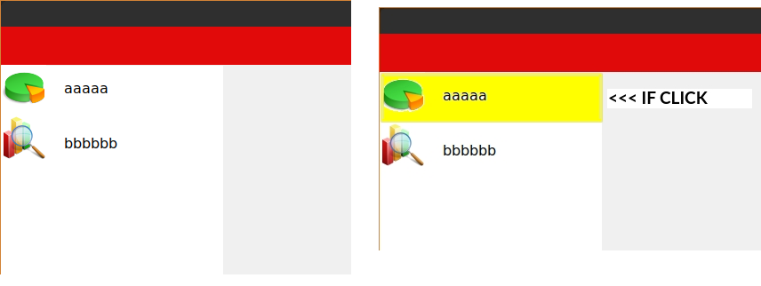 我构建了一个按钮图像(第一个图像),但是我手动将相邻的文本添加为纯文本。我想确保点击按钮(图像或文本),按钮的背景色变成永久的(第二个图像)。