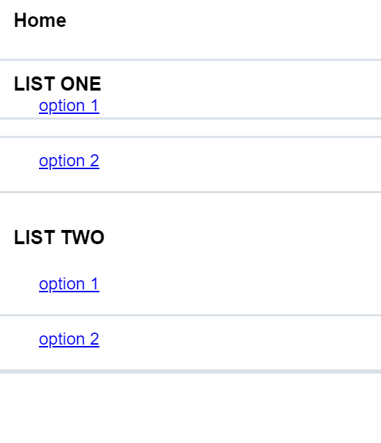 <div class=" text-base text-gray-700 ml-10 mt-1"><a href="">option 1</a></div>