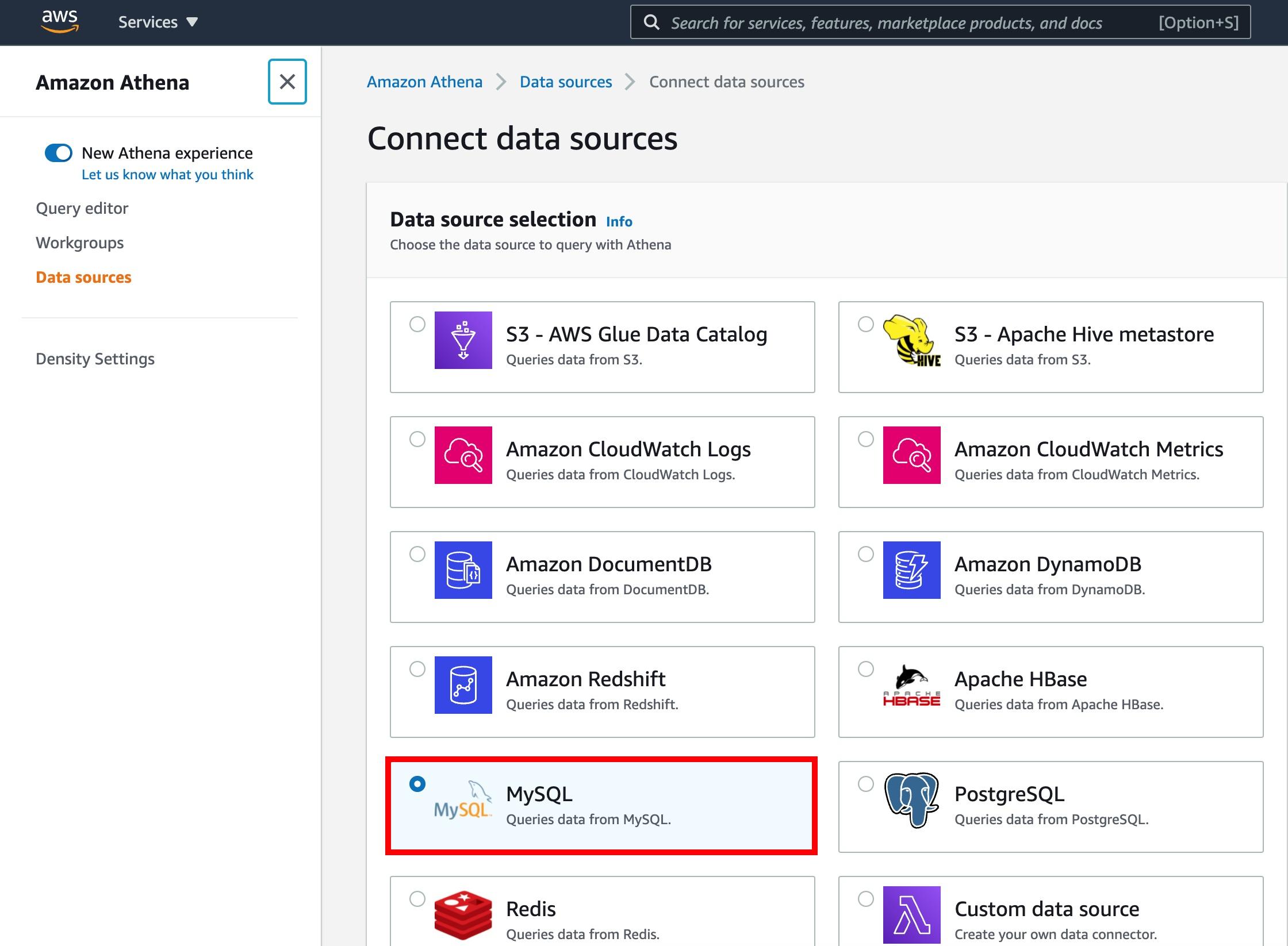 如何在AWS中创建雅典娜数据源,这是使用MySQL连接到AthenaJdbcConnector数据库的JDBC。