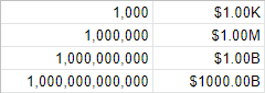 可以以某种方式对其进行调整,以显示自定义格式,如K、B、M,但您总是只能使用3个插槽,这意味着您不能将万亿个插槽作为第4种类型/插槽。