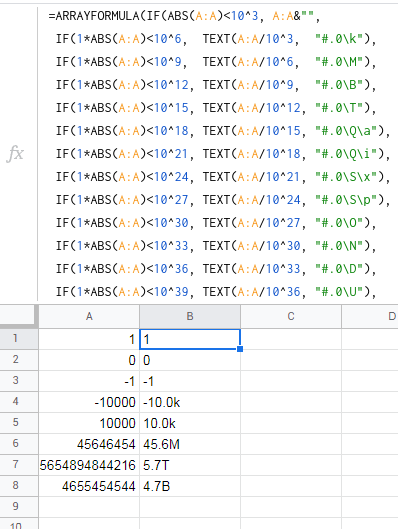 IF(1*ABS(A:A)<10^12, TEXT(A:A/10^9, "#.0\B"),