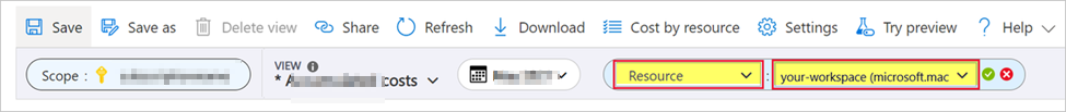 创建筛选器对Azure Machine学习工作区资源的范围数据进行范围设置: