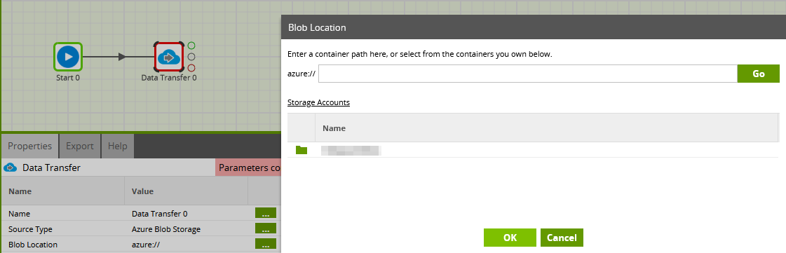 数据传输组件必须以某种方式对Azure进行身份验证,因此有一个先决条件(它看起来已经开始了)