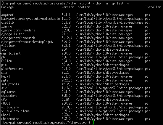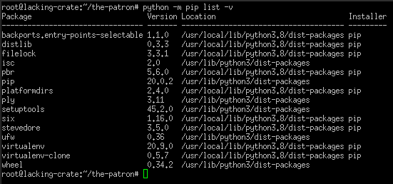 运行pip list -v显示使用pip install <package-name>安装的包位于lib/python3.8/site-packages目录下的虚拟环境文件夹中,而运行python -m pip list -v则显示使用python -m pip <package-name>安装的包位于/usr/lib/<python3 or python3.8>/<site-packages or dist-packages>目录下。