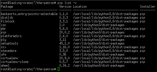 3-下面的屏幕截图显示了在虚拟环境中运行pip list -v的结果: