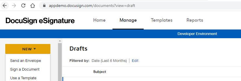 draft在用户草稿文件夹下不可见,但创建信封REST请求返回成功的信封id和在DocuSign中直接创建的信封路径下面是我如何在DocuSign中直接做到这一点