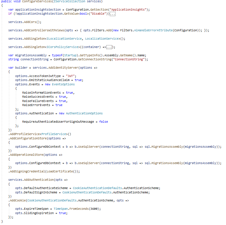Startup.cs => ConfigureServices()