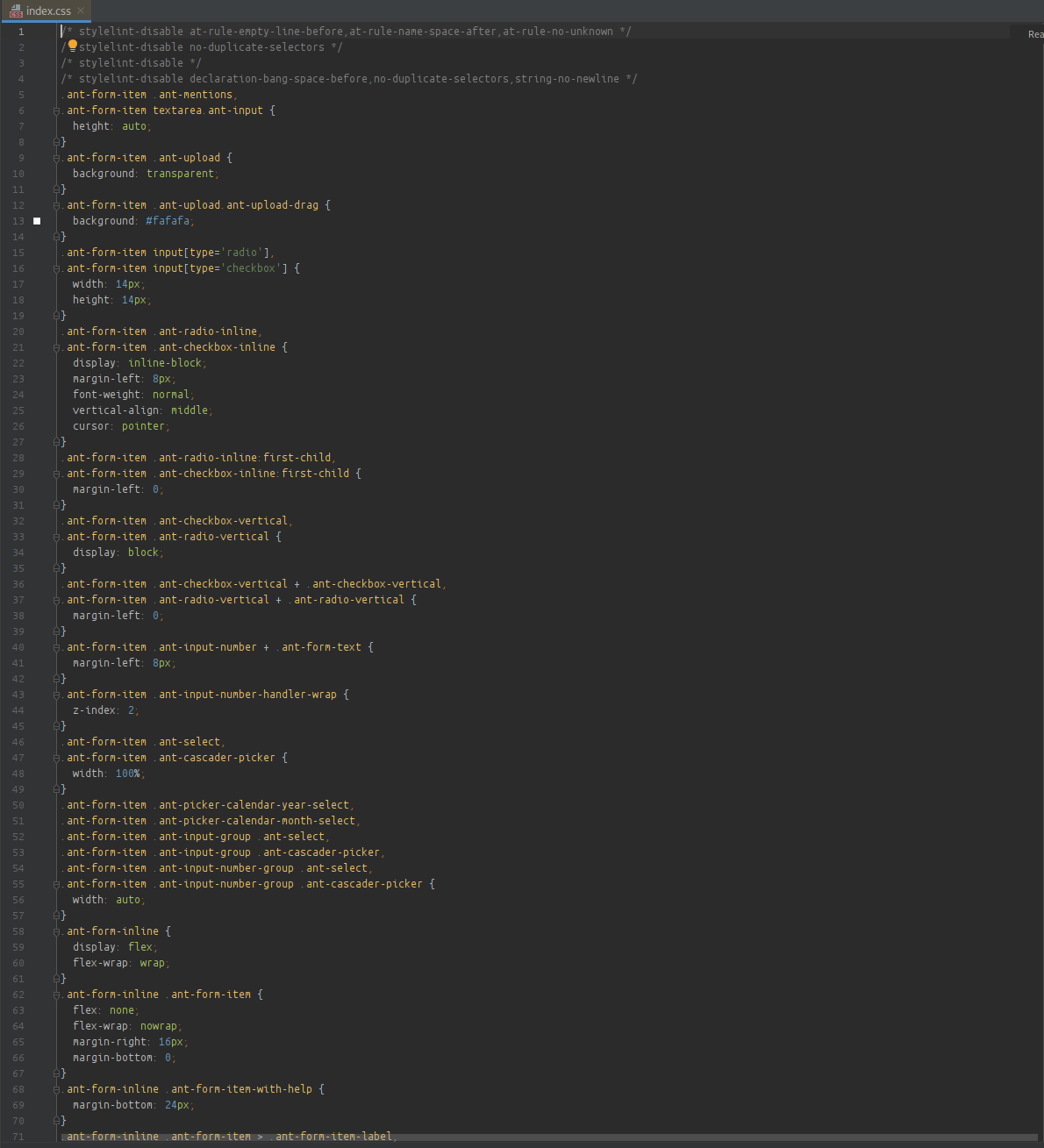 例如:在<Form/>中有一个组件antd,所以它是className is:.ant-form。(全球风格)