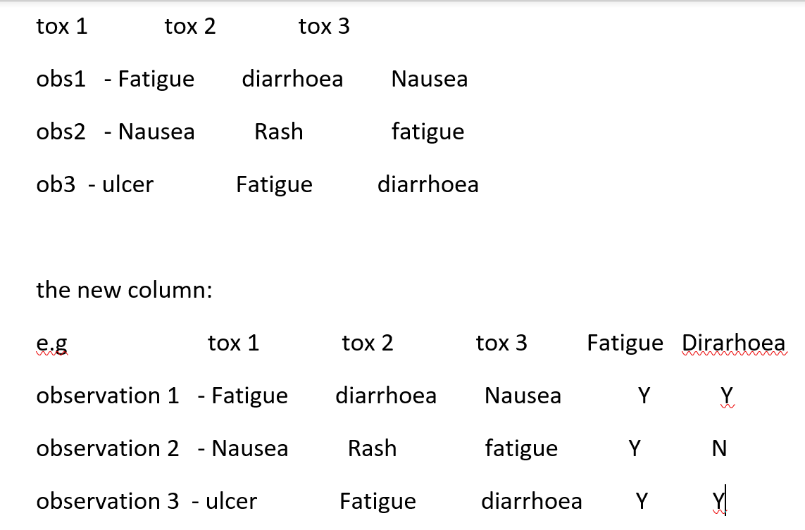 更新:如果您希望在毒性类型列中只有TRUE/FALSE,那么这是一个简单的修改: